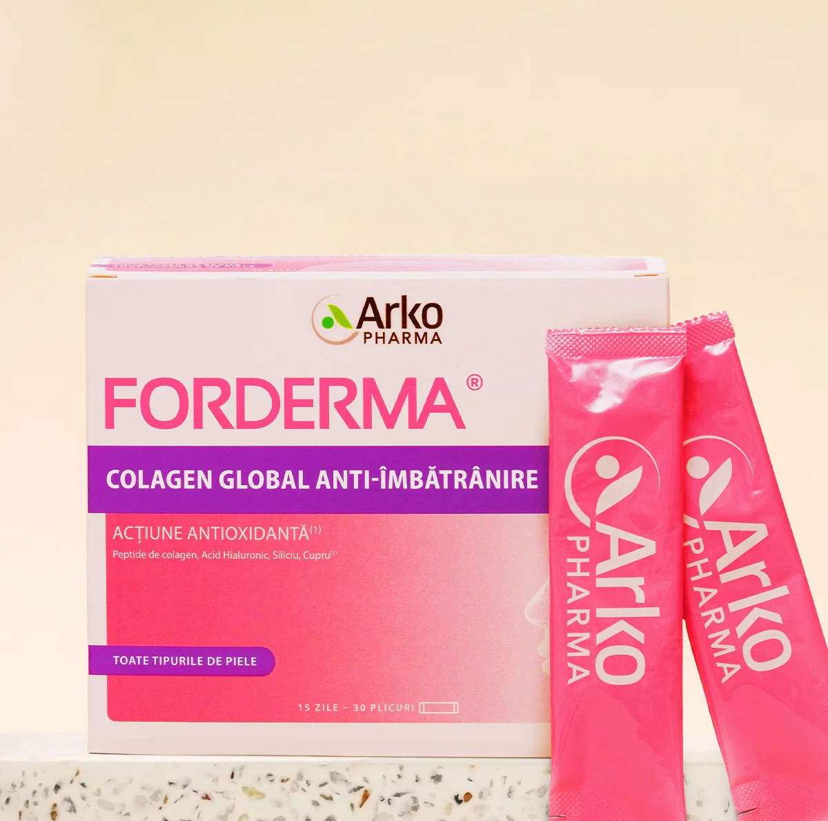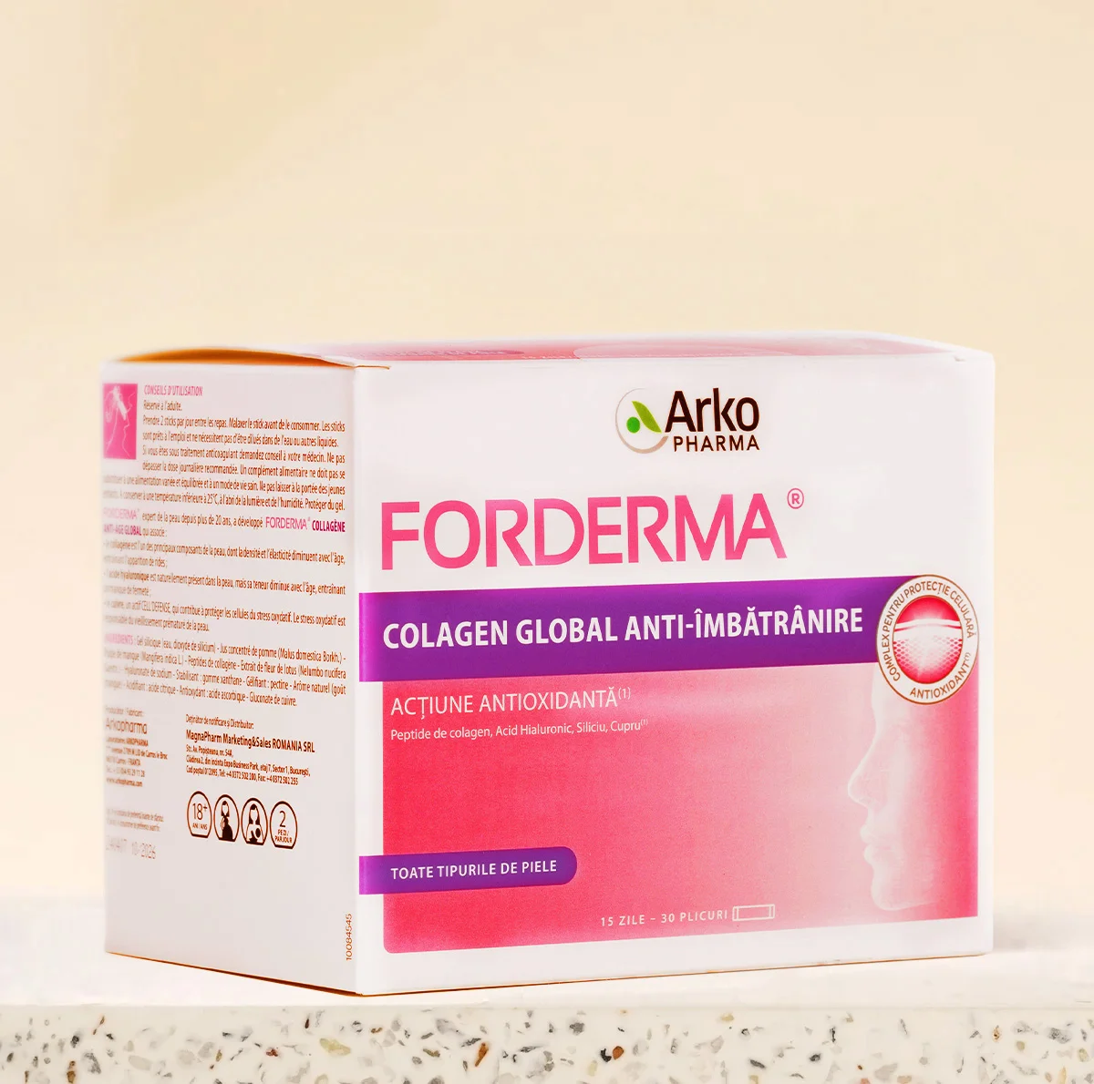 FORDERMA® expert în îngrijirea pielii de peste 20 ani, a dezvoltat COLLAGEN GLOBAL ANTI-ÎMBĂTRÂNIRE ce conține: